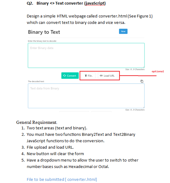 Solved Q2. Binary Text converter (javaScript) Design a